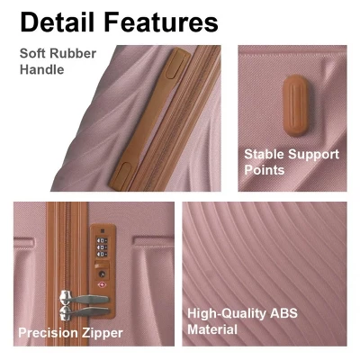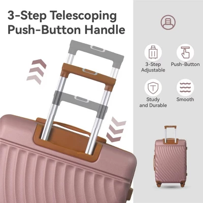 FURNIinspire Bag And Luggage Sets 3 Piece Rolling Luggage Travel Suitcase Set, Lightweight Durable Suitcases With Wheels, Pink, 21.06″*11.81″*30.31″