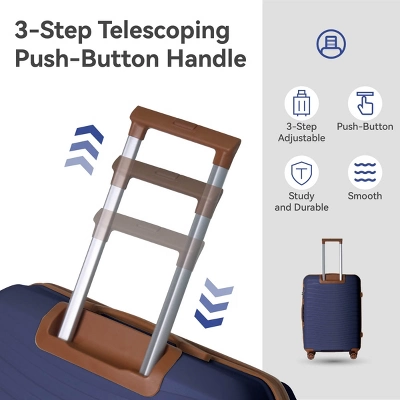 FURNIinspire Bag And Luggage Sets 3 Piece Textured Travel Luggage, Hard Suitcase Set With Wheels, Scratch-Resistant, Navy Blue, 21.46″*12.01″*30.51″