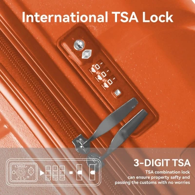 FURNIinspire Bag And Luggage Sets 3 Piece Textured Travel Luggage, Hard Suitcase Set With Wheels, Scratch-Resistant, Orange, 21.65″*13.19″*31.1″