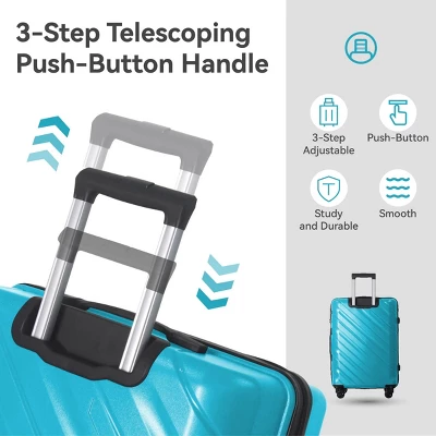 FURNIinspire Bag And Luggage Sets 3 Piece Textured Travel Luggage, Hard Suitcase Set With Wheels, Scratch-Resistant, Peacock Blue, 21.65″*13.19″*31.1″