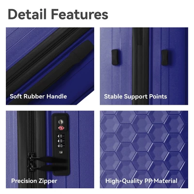 FURNIinspire Bag And Luggage Sets 3 Piece Travel Luggage With Rolling Wheels, Lightweight Hard Shell Suitcase Set, Blue, 20.08″*11.81″*30.12″