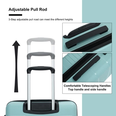 FURNIinspire Bag And Luggage Sets 3 Piece Travel Suitcase Set With Spinner Wheels, Stylish Lightweight Carry On Luggage, Green, 18.9″*11.77″*28.94″