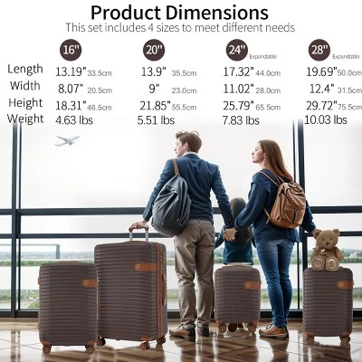 FURNIinspire Bag And Luggage Sets 4 Piece Luggage Set, Carry On Luggage Suitcase With 4 Packing Cubes, Travel Luggage, Brown, 16.69″*12.4″*29.72″