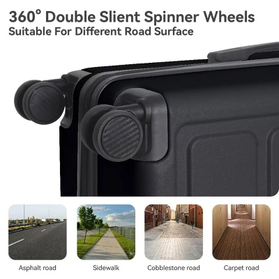 FURNIinspire Bag And Luggage Sets Hard Shell 3 Piece Suitcase Set, Travel Luggage Business Suitcases With Wheels, Black, 19.88″*10.63″*29.92″