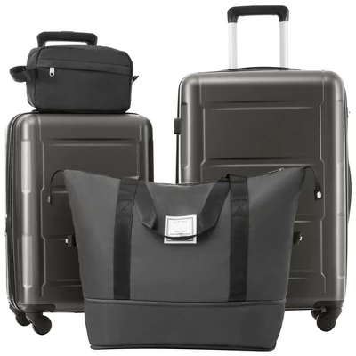 FURNIinspire Bag And Luggage Sets Luggage Set Travel Suitcase With Bags Spinner Wheels Abs Lightweight Suitcase, Black, 16″*10″*24″