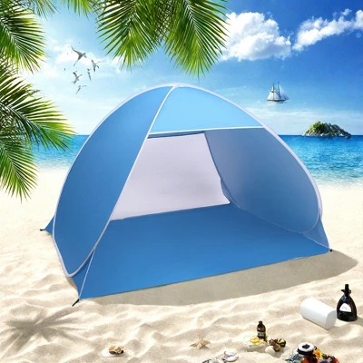 Enjoy effortless shade and comfort with this pop-up beach tent, designed for convenience and sun protection. The automatic setup allows you to unfold it in seconds—no complicated assembly required. Made with high-quality silver-coated fabric, it blocks harmful UV rays while keeping the interior cool. The lightweight design makes it easy to carry, whether you’re heading to the beach, park, or a lakeside picnic. Mesh panels provide ventilation and keep bugs out, ensuring a pleasant experience.