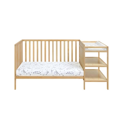 - Space-efficient nursery furniture: This crib and changer combo combines essential nursery functions into one compact unit, maximizing available space while maintaining a stylish appearance.