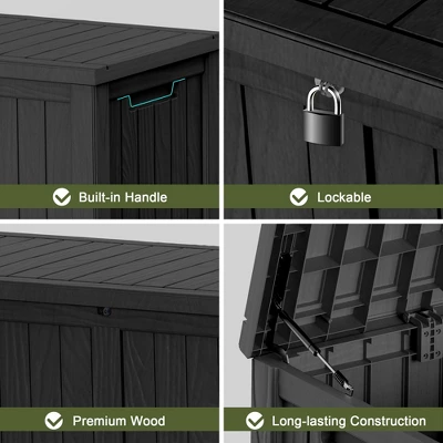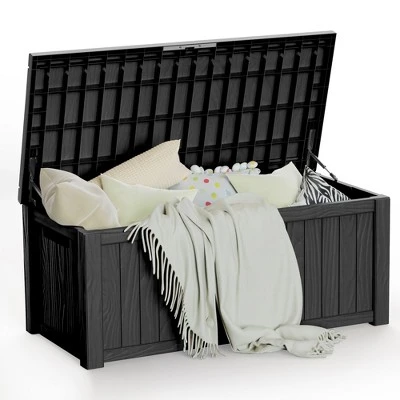 FURNIinspire Deck Boxes, 120 Gallon Waterproof Deck Box Lockable Storage Container For Patio Furniture, Garden Tools, Black, 54.3″*26.5″*24.2″