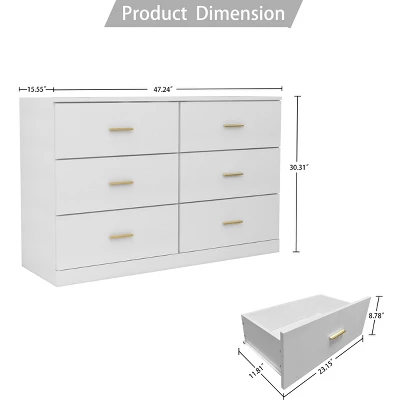 FURNIinspire Dressers 6 Drawer Dresser Storage Organizer For Bedroom, Nursery, Modern Clothes Closet Storage Cabinet, White, 47.24″*15.55″*30.3″