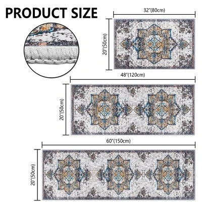 FURNIinspire Floor Mats 3 Piece Farmhouse Kitchen Rug Washable Area Rugs Non Skid Bohemian Mat For Hallway Entryway, Multicolored, 60″*20″