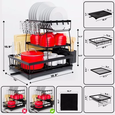 - Triple Tier Clearance: Three ascending levels separate plates, bowls and cups, turning a single counter patch into a vertical drying neighborhood.
