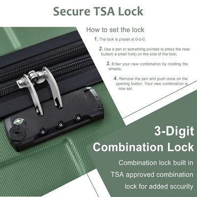 FURNIinspire Luggage 24 Inch Hardshell Suitcase, Checked Luggage, Lightweight Suitcases With Wheels For Travel, Business, Green, 10.2″*15.9″*25.8″
