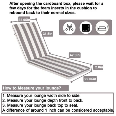 Enjoy superior comfort with these high-quality outdoor lounge cushions. Crafted from UV-resistant polyester fabric that withstands sun exposure without fading. The high-resilience sponge filling provides lasting support while the smart storage design makes off-season packing easy. Perfect for poolside, patio or garden use, these durable cushions combine comfort, convenience and style for your outdoor relaxation.