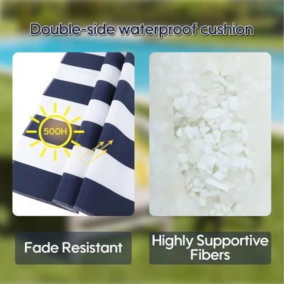 FURNIinspire Outdoor Seat Cushions Patio Chair Cushions Replacements, 2 Pcs Set High Back Seat Cushions, Blue Stripes, Multicolored, 45″*22″*4″