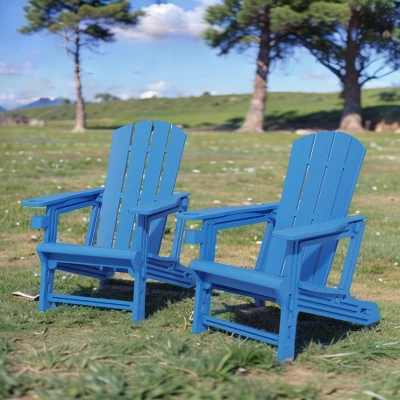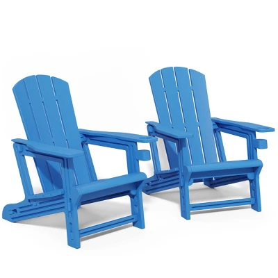 FURNIinspire Patio Accent Chairs Outdoor Folding 2PCS Chairs Adirondack Chair, Portable Chair With Handles For Backyard, Blue, 31.4″*29.6″*36.4″