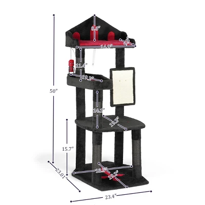 FURNIinspire Cat Tree unites dramatic design with everyday feline comfort, creating a 3 story palace where cats can reign, relax, and recharge. A plush throne bed crowns the summit, offering a lofty lookout that satisfies the urge to survey territory while providing cloud like naps warmed by window light. Jet black posts and a contrasting pale board deliver dual scratching textures that encourage natural claw maintenance and divert attention from household upholstery.