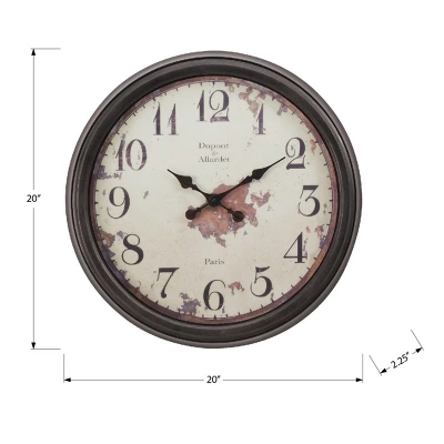 FURNIinspire Wall Clocks 20inch Round Aged Wall Clock Living Room Vintage Timepiece Hanging Clock Home Decor For Bedroom, Brown, 20″*20″*2.25″