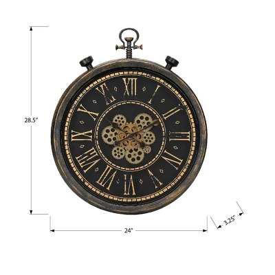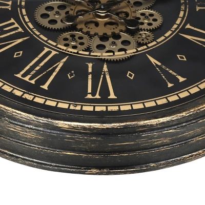 Enrich empty walls with FURNIinspire generously proportioned timepiece that merges vintage horology with contemporary reliability. The expansive round form showcases a distressed grey wash reminiscent of aged metal, while exposed moving gears and bold Roman numerals circle beneath clear glass for swift, dramatic reading from anywhere in the room