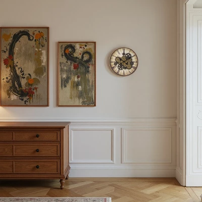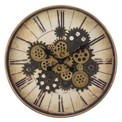 FURNIinspire Wall Clocks Round Gear Mechanism Hanging Clock Living Room Decorative Timepiece Home Vintage Wall Decor, Brown, 20″*20″*2.5″