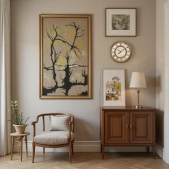 FURNIinspire Wall Clocks Round Roman Numeral Clock Decorative Living Room Hanging Clock Vintage Timepiece Home Decor, Brown, 20″*20″*2″