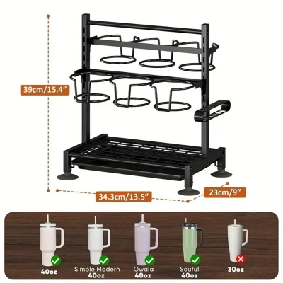 - 6-Slot Adjustable Design for Versatile Capacity: Featuring 6 adjustable slots, the organizer fits a variety of cup sizes—from 40oz tumblers and Stanley cups to thermos mugs and regular coffee cups. The adjustable structure adapts to different cup heights and diameters, letting you customize the layout to avoid overcrowding. It can hold up to six cups at once, making it ideal for families or cup collectors, while the flexible slots eliminate the hassle of mismatched cup-and-rack sizes common with fixed organizers.