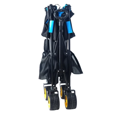 Furniinspire Wheelbarrows And Lawn Carts Big Large Capacity Folding Cart, Extra Long Extender Wagon Cart, Black And Blue, 53“*20″*51″