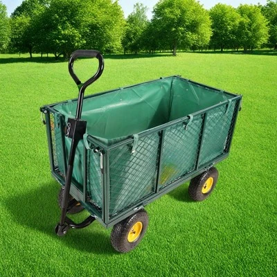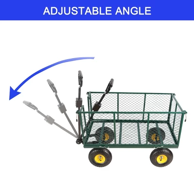 FURNIinspire Wheelbarrows And Lawn Carts Flower Cart Garden Flower Cart, Multi Function Wagon Cart With Handle, Green, 44“*20″*41″