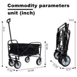 FURNIinspire Outdoor Serving Carts Minimeetall Extention ExCollapsible Foldable Wagon Cart Beach Wagon Heavy Duty Cart, Black, 25.98"*17.32"*37.4"