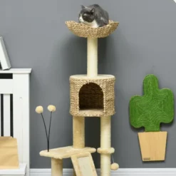FURNIinspire 25″ 4-Step Multi-Level Carpeted Cat Scratching Post Pet Stairs,25″*17″*23.5″